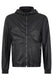 Black leather jacket with hood, elegant and versatile