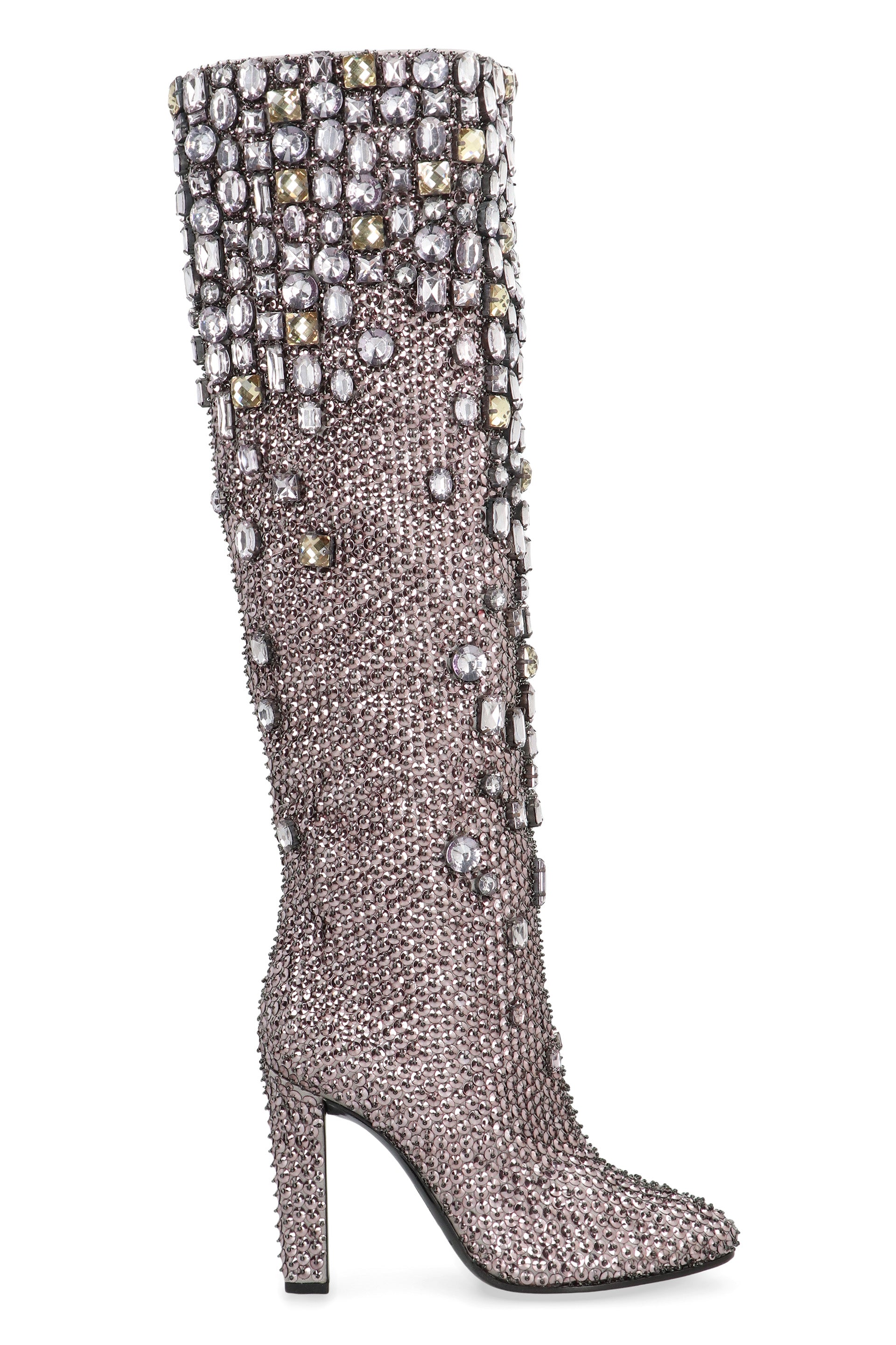 Knee-high boots with studs and crystals