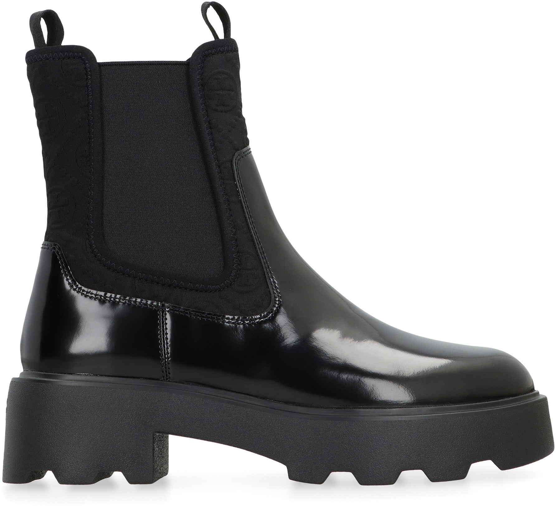 Leather ankle boots, characterized by an elegant and modern design. The thick sole provides comfort and stability, while the elastic bands on the sides make putting them on easier. Ideal for an urban and versatile look, these boots can be paired with various types of outfits, from casual to more formal. Perfect for the autumn and winter seasons.