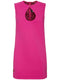 Fitted dress that features an elegant two-tone design, characterized by a vibrant pink hue and intricate details. The V-neckline highlights the neck, while the crossover straps add a touch of originality. The midi length and fitted silhouette enhance the shapes, making it ideal for special occasions. Made with high-quality materials, it ensures comfort and a perfect fit. Perfect to pair with elegant accessories for a sophisticated look.
